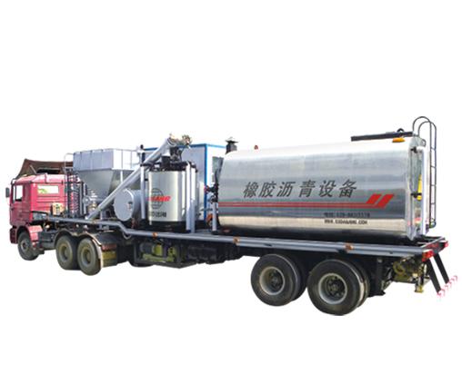 This plant is specially designed to produce crumb rubber modified asphalt (asphalt rubber-AR). It is typically composed of two main components: a mobile mixing unit that initially mixes ground rubber with hot asphalt, and a mobile reaction tank that both agitates and stores the mixture. The mixing unit is mainly composed of asphalt heating tank, mixing tank with high-shear mixer, crumb rubber hopper with rotary feeder and load cells, asphalt pumping and metering system, AR pumping system, additives feeding and metering system, Burner and hot oil heating system, pneumatic system, control system, generators, etc.The reaction tank is mainly composed of four vertical agitators, Burner and hot oil heating system, AR pumping system, control box, etc.
